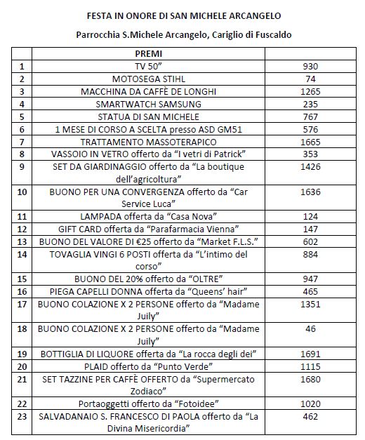 Riportiamo un video della processione, la locandina del gruppo e la lista dei premi della riffa.